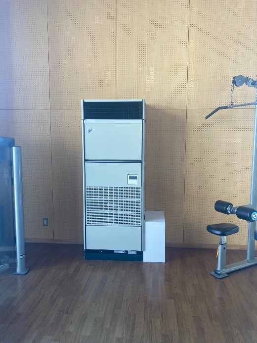 アリーナ、トレーニングエリア、トレーニングスポットにエアコンが完備され、適切な温度管理のもとで授業や部活動ができる環境が整いました。