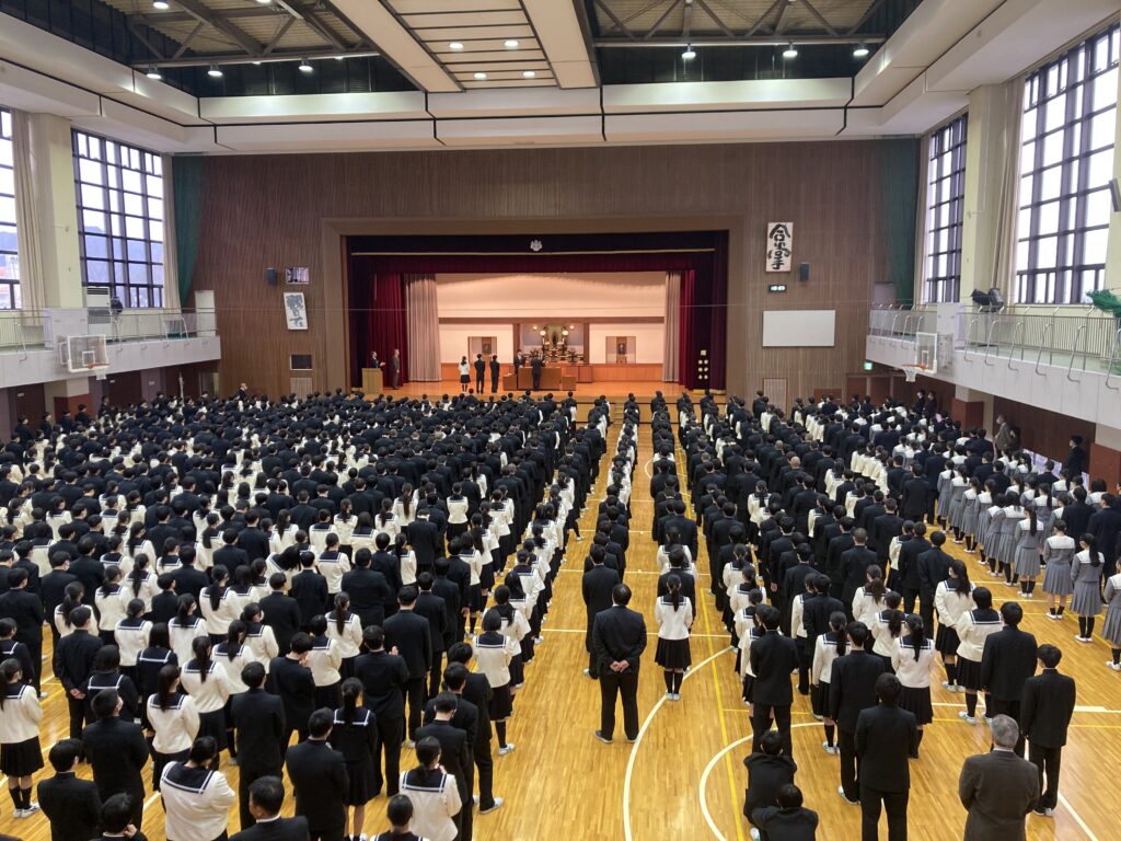 講堂において第3学期始業式が行われました。全校生徒を前に、少林寺拳法部と理科部の表彰が行われました。