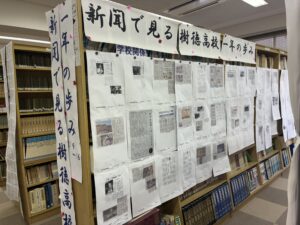 新聞記事展を本校正道館8Fの図書室で実施しています。