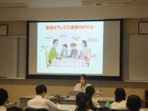 10月14日(火)3時限より、L1教室で2年生を対象に、生き生き市役所出前講座「早寝・早起き・朝ごはんのすすめ」が行われました。 桐生子育て相談課から赤石様、他2名の方にご来校いただき、規則正しい生活をする必要性やバランスのよい食事をするための工夫等について興味深いお話がありました。生徒たちが自分たちの生活にいかしていってほしいと思います。