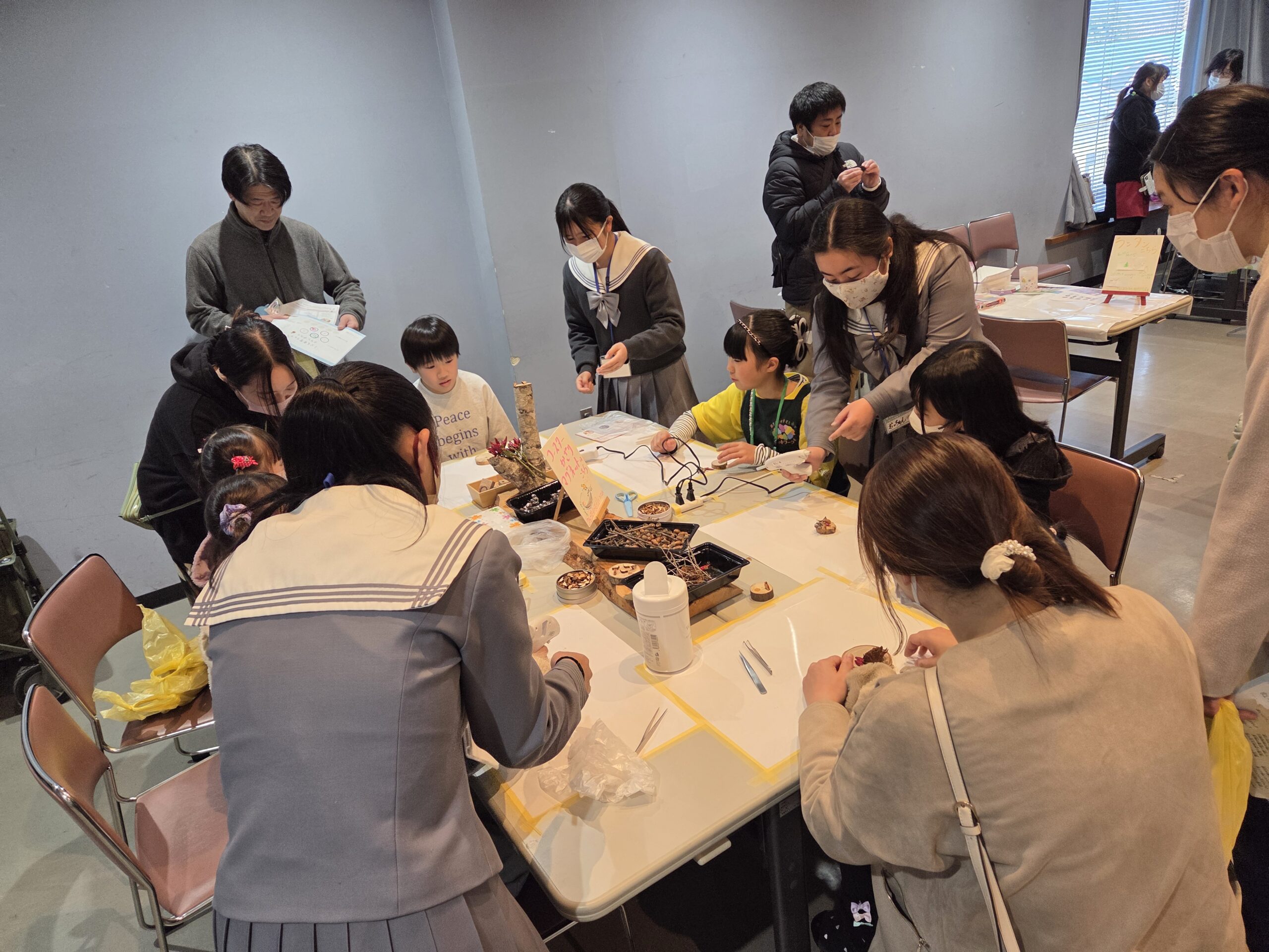 12月13日(土)みどり市笠懸公民館にて、子ども食堂フェア2025が開催されました。樹徳中学校は、「樹徳中ピッパちゃんち」というブースで3年生のボランティアが参加しました。尾瀬の木道の端材を活用して、ランタン、キーホルダー、マグネットなどのワークショップをしました。売り上げは、木道整備や水芭蕉の植栽などに寄付する予定です。園児や児童とその保護者が多く参加しており大好評でした。