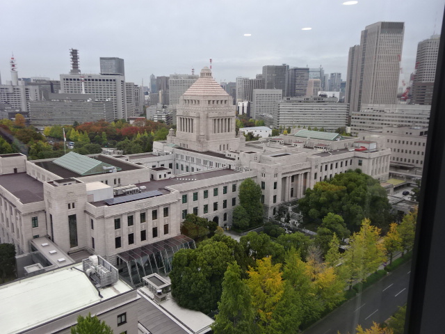 参議院会館12階、中曽根弘文さん事務所の横から国会議事堂の裏側をとりました。
