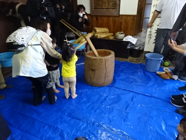 小さな杵で「ヨイショ!ヨイショ!」と声を出して懸命にお餅をついておりました。