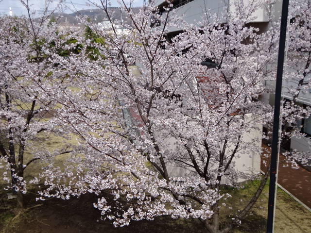 今朝出勤してみると校内の桜が咲き始めました。